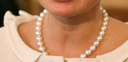 Схоже намисто пані Тимошенко вже одягала раніше до ВР (фото 6,8,9) і до Львова (7), де вдало видно гарнітур обручка-сережки-намисто.