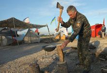 Пікетники кажуть, що збираються стояти, поки не вивезуть американський вантаж з порту Феодосії.