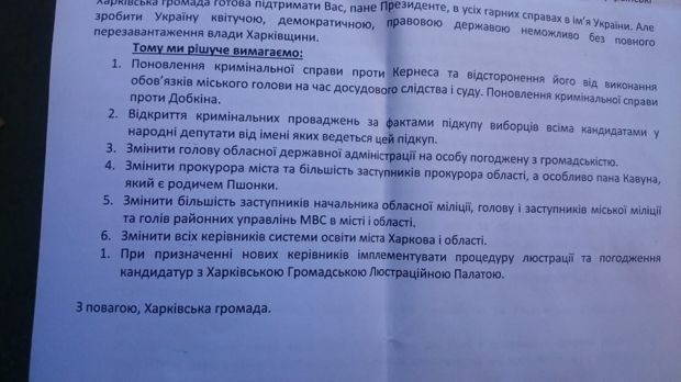 Вимоги харів’ян / facebook.com/maidanpresscenter