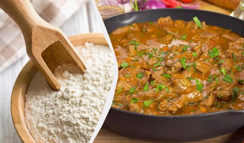 Перш ніж почати готувати саму страву, ви повинні розуміти, як правильно робиться підлива, тому що без борошна страва не вийде. Для того, щоб сухий інгредієнт не згрупувався грудочками, його не можна відразу сипати в каструлю з м'ясом. Спочатку необхідно висипати інгредієнт на сковороду і обсмажити до появи золотистого кольору. Потім набрати борошно столовою ложкою і розмішати у воді до однорідної консистенції, і тільки потім вливати в каструлю. Якщо будете дотримуватися цієї технології, проблем з тим, що додати в підливу, щоб вона була густа, не виникне - борошно відмінно впорається із завданням.