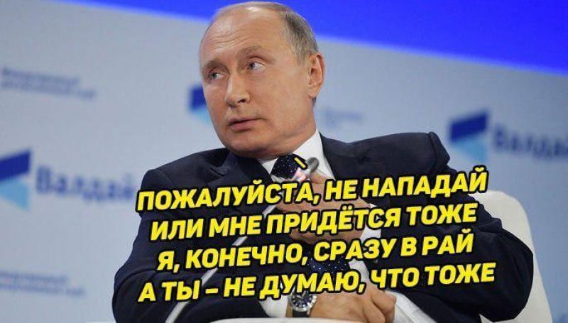 Вчора під час виступу на форумі президент РФ Володимир Путін пообіцяв росіянам, що в разі ядерної війни вони потраплять в рай як мученики, а решта «здохнуть». Ці слова швидко розійшлися в соцмережах і користувачі створили на їх основі масу фотожаб.