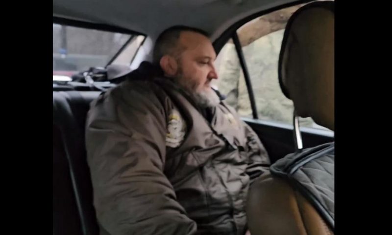 Дорогою машину зупинили люди у формі. Вони побили колишнього військового, витягнули з автівки та повезли в невідомому напрямку. На заяви про інсульт ці люди не зважали. Поруч видно автівку так званої поліції "ДНР".