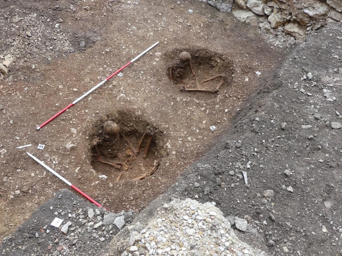 Під час тих самих розкопок археологи також виявили римське кладовище, що містило 22 поховання немовлят, датовані I століттям нашої ери. Дітей поховали лежачими на спині або боці в кам'яних або дерев'яних трунах. Деяким у якості похоронних дарів принесли монети або кераміку.