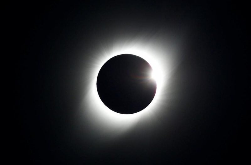 Як тільки Місяць повністю заблокує диск, з'явиться корона у вигляді перлинного ореолу. Небо навколо різко потемніє – достатньо, щоб стали видні яскраві зірки та планети. Падіння температури в сухому пустельному повітрі може бути раптовим і дезорієнтуючим.