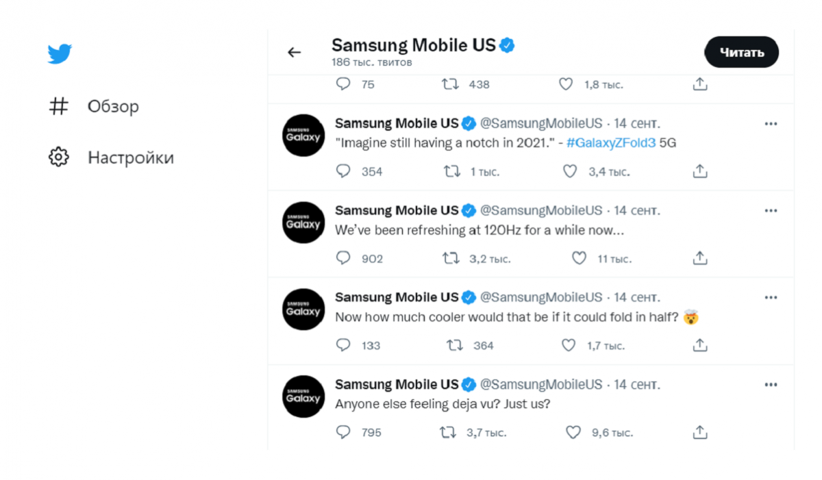 Так, 14 вересня, відразу після презентації Apple, американське представництво Samsung опублікувало відразу кілька "твітів". У першому співробітники компанії пожартували про те, що вони відчувають дежавю. Цими словами вони натякнули на те, що розробки від Apple навряд чи можна назвати інноваційними.