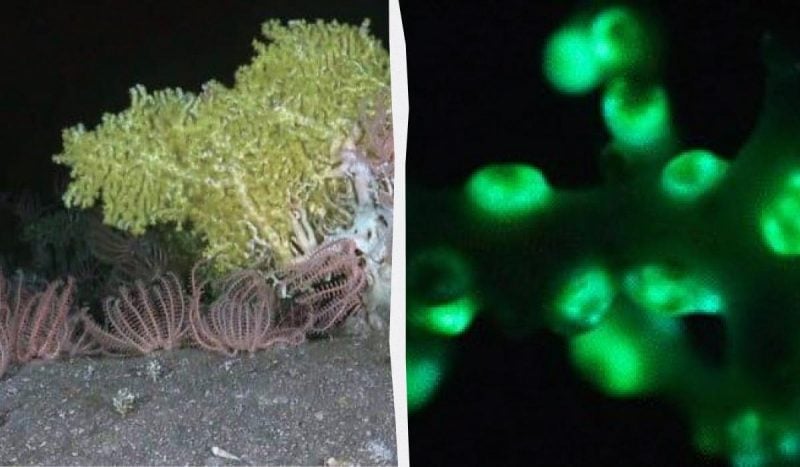 У вапняковій печері на глибині 385 метрів під поверхнею океану біля одного з японських островів вчені виявили новий вид біолюмінесцентного корала, Corallizoanthus aureus, світло якого з'являється тільки при дотику.