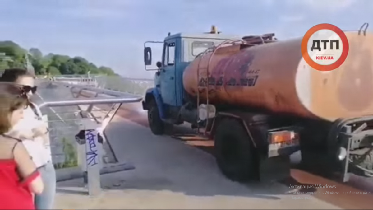 У коментарях користувачі пожартували, що таким чином на мосту охолоджують асфальт, «щоб фури надалі колію не продавили».