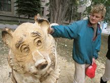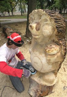 Організатори Першого українського фестивалю дерев`яної скульптури "Поляна казок" в Запоріжжі. У створенні "Поляни казок" брали участь художники з Києва, Рівного, Харкова і Луганська.