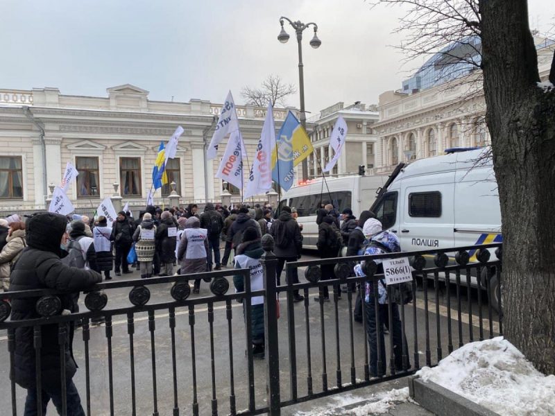 Біля Верховної Ради перекрито рух транспорту через акцію протесту "Попіл", учасники якої виступають за скасування обов'язкових касових апаратів для ФОПів.