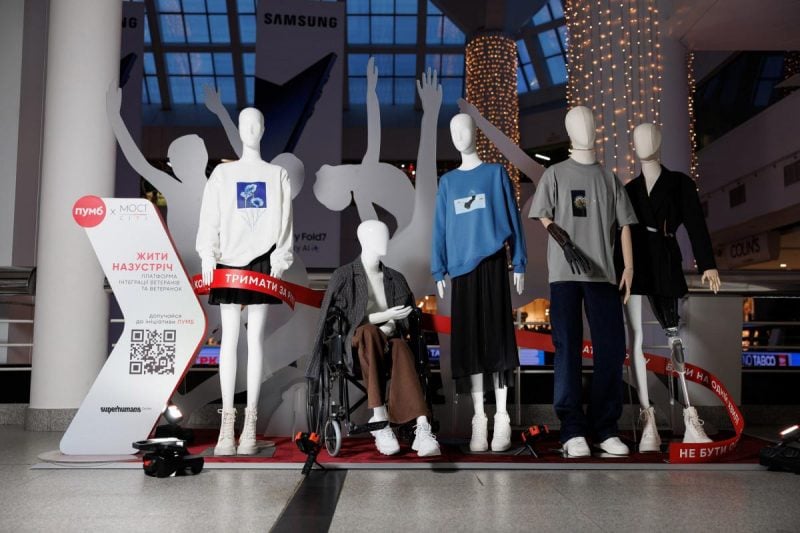 В Дніпрі презентували інсталяцію "Маніфест рівності різних" – особливу поп-ап вітрину з різними манекенами, два з них – з протезуванням, один – в кріслі колісному. Та всі вони – поруч, об’єднані рухом назустріч одне одному. Проєкт реалізовано в межах платформи інтеграції ветеранів і ветеранок "Жити назустріч" від банку ПУМБ, за підтримки Superhumans Center. Він присвячений інклюзивності та рівності українців у всіх сферах життя: в підприємництві або в спорті, у громадському просторі чи в моді.