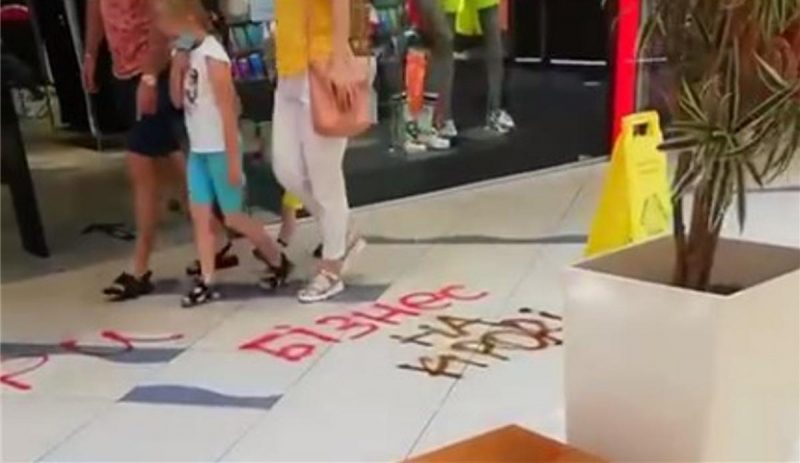 На записі видно, що невідомі написала на підлозі:" Спонсор сепаратистів","Терористи","Бізнес на крові".