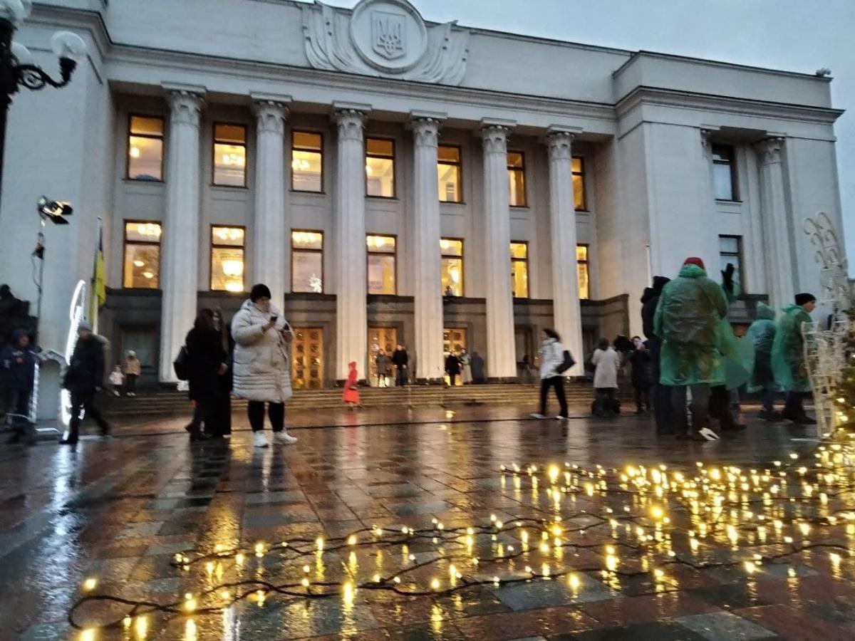 Біля будівлі Верховної Ради України, на площі Конституції, вперше відбулося відкриття новорічної ялинки.