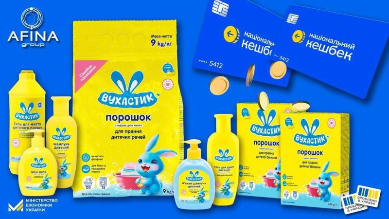 У програмі вже зареєстровано понад 40 тисяч товарів від 600 українських виробників. У категорії товарів побутової хімії та догляду представлена продукція ТМ "Вухастик", тож за покупку будь-яких товарів із серії засобів для догляду та прання для всієї родини від бренду "Вухастик" буде нараховано 10% кешбеку, який можна буде витратити на власні потреби.