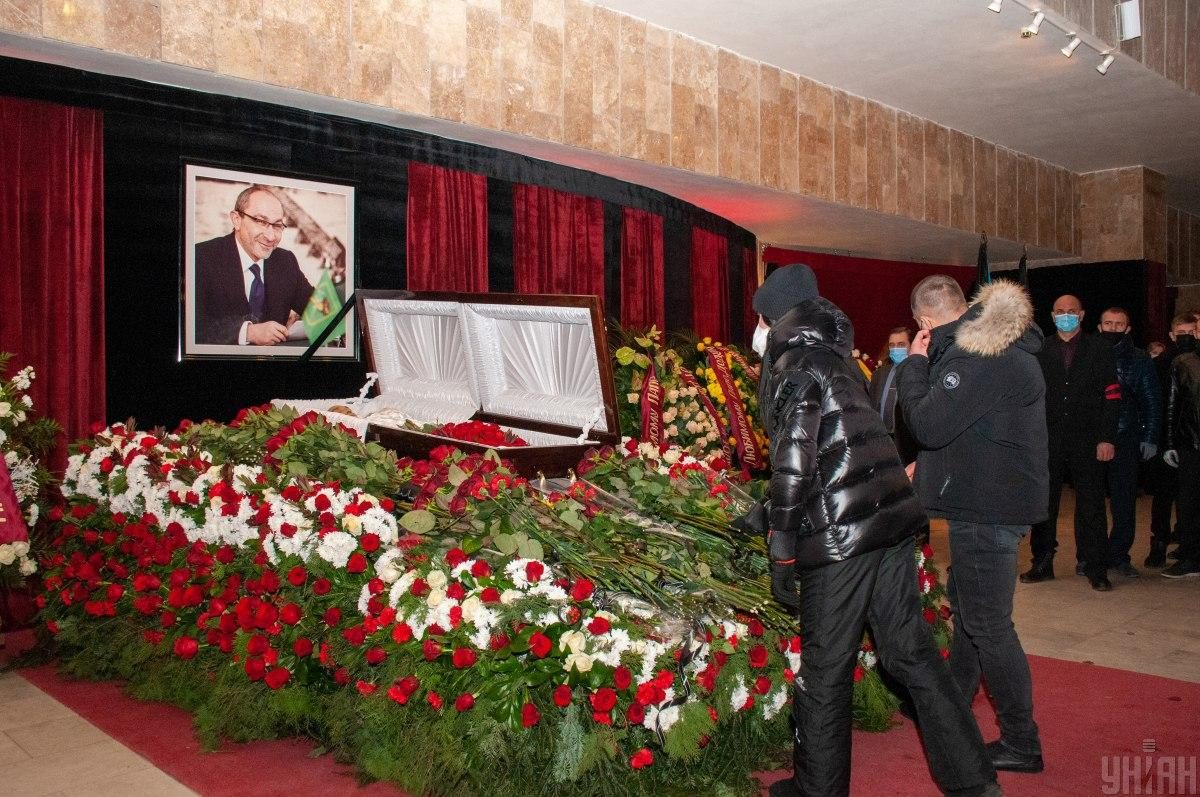Труну мера Харкова Геннадія Кернеса перевезли в Харківський національний театр опери та балету, там проходить церемонія прощання.