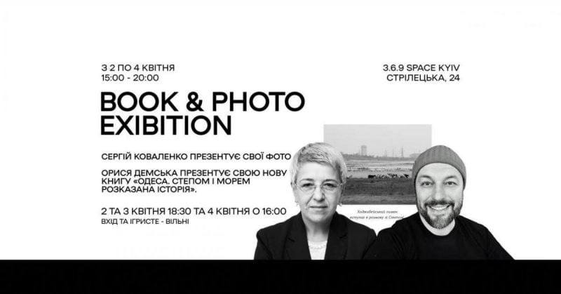 У Києві з 2 по 4 квітня пройдуть зустрічі-презентації книги мовознавиці Орисі Демської "Одеса. Степом і морем розказана історія", а також фотовиставка робіт Сергія Коваленка. Події відбудуться у мистецькому просторі 3.6.9 Space Kyiv і будуть присвячені ідентичності й візуальним образам Одеси.