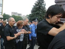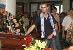 На фото 1 - Олексій Михайличенко; на фото 4 - вдова Євгена Мефодійовича Тамара; на фото 5 - Руслан Ротань (у синій футболці).