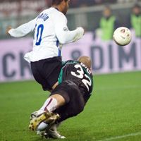 Успіх в Турині дався команді Роберто Манчіні не просто. У першому таймі міланці мали невелику ігрову перевагу, але перший момент біля чужих воріт змогли створити лише після 20-ї хвилини - Адріано грав на вістрі, але не зміг переграти Абб’яті. Трохи пізніше бразильський форвард мав ще кілька шансів, але “розпечатав” італійського ветерана лише на 35-й хвилині, головою переправивши м`яч у ворота після навісу від свого співвітчизника Майкона. Після гола "Інтер" додав в активності, але швидко розвинути успіх не зміг - пара нереалізованих моментів на рахунку Златана Ібрагімовича.