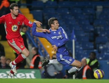 | Андрій Шевченко падає в межах штрафного майданчика "Блекберна" |