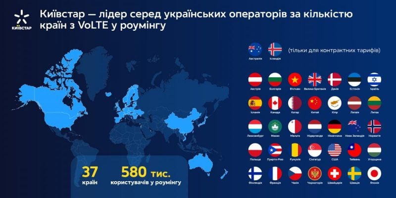 Національний оператор електронних комунікацій Київстар розширив можливості голосового зв’язку для абонентів за кордоном завдяки VoLTE(Voice over LTE). Технологія у роумінгу тепер доступна у 37 країнах – найбільша кількість серед українських мобільних операторів, що забезпечує стабільне з’єднання та високу якість голосових викликів під час подорожей.