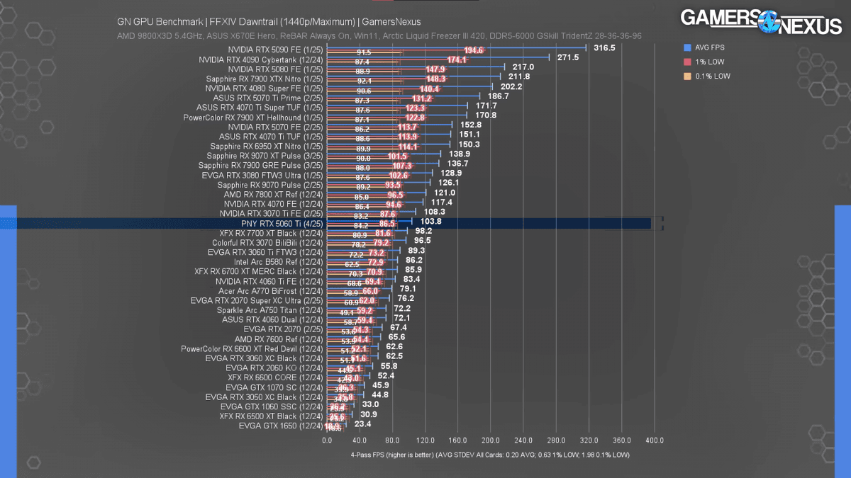 З результатів видно, що RTX 5060 Ti за продуктивністю перебуває приблизно на одному рівні із RTX 3070 та Radeon RX 7700 XT. При цьому на вторинному ринку ці карти часто коштують стільки ж або навіть дешевше, ніж рекомендована ціна нової картки. Саме тому блогер не побачив жодної причини, щоб рватися і купувати RTX 5060 Ti.