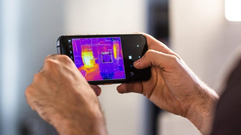 Також пристрій отримав найпотужніший серед усіх смартфонів тепловізійний сенсор InfiRay. Він володіє роздільною здатністю 1440х1080, а діапазон його вимірювань досягає 1 км. Ще однією цікавою характеристикою став екран AMOLED, який рідко зустрінеш в захищених смартфонах.