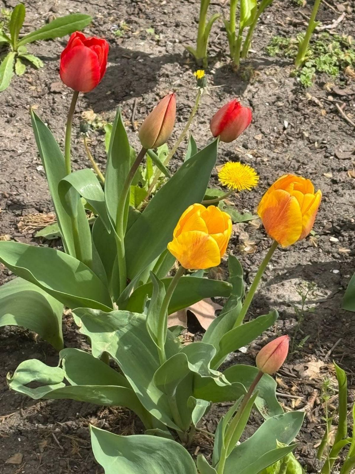 Як повідомили у пресслужбі міської ради, розквітають тюльпани з Нідерландів, цибулини яких торік передали через Посольство України в цій країні.