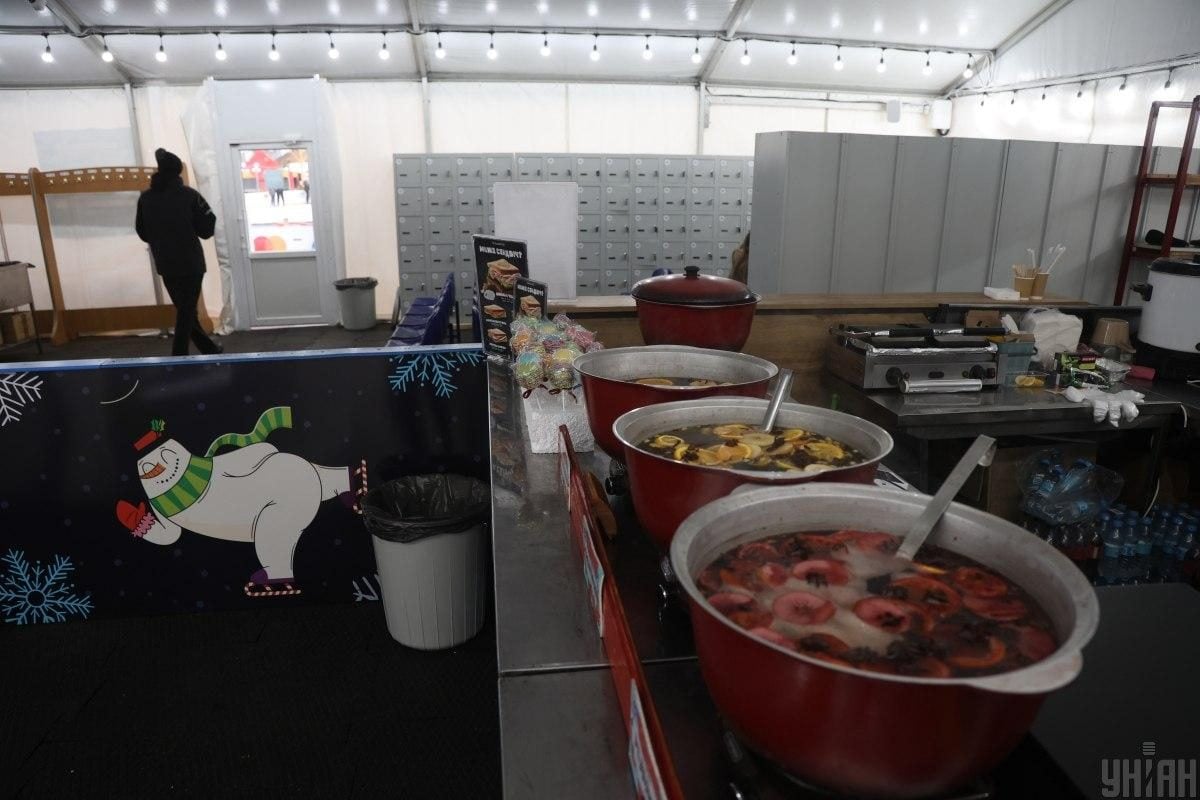 Наразі тривають останні приготування до різдвяного ярмарку – встановлюються декорації, облаштовуються точки для продажу їжі та напоїв.