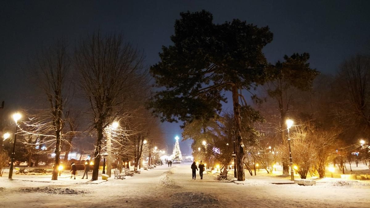Наразі чудові снігові пейзажі можна побачити як в історичному центрі міста, так і в міському парку.