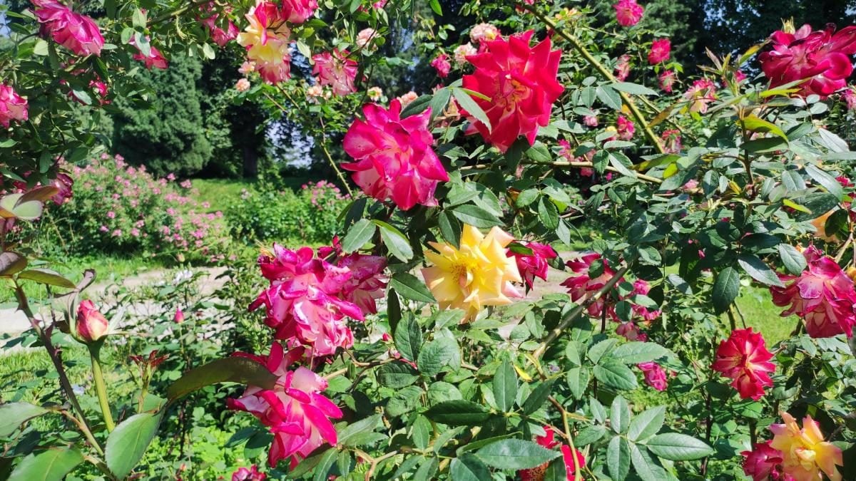 Серед троянд столичного ботсаду дійсно можна надовго заблукати, гуляючи фігурними стежками та розглядаючи різнокольорові квіти.