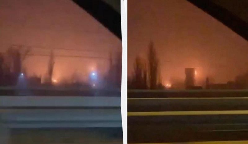 Удар по об’єкту підтверджують й місцеві жителі, які фільмують кадри займання.