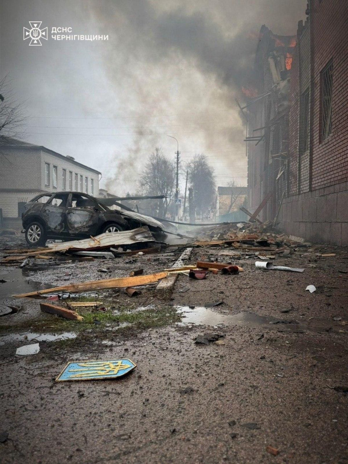 В поточному році російська армія цілеспрямовано б'є по середмістю Новгорода-Сіверського. Суттєво пошкоджений центральний універмаг "Ярославна", будівлі районної ради, центру зайнятості, податкової інспекції, бібліотеки, будинок культури – об'єкти, які не мають нічого спільного з військовими цілями.