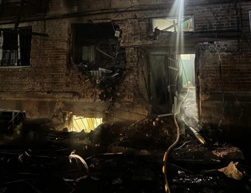 Згодом він додав, що внаслідок ворожої атаки, горить ще один житловий будинок та дах гуртожитку.