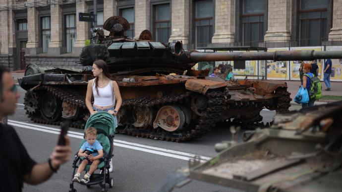 Військова техніка РФ все ж побуває на Хрещатику. Щоправда, вона іржава, виведена з ладу та без екіпажу. Йдеться про виставку знищеної українськими захисниками техніки росіян. Її привезли до центру Києва напередодні річниці Дня Незалежності України, що відзначається 24 серпня.