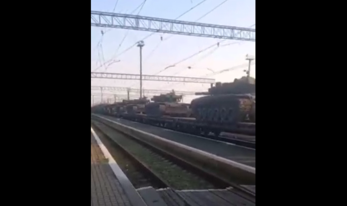 На опублікованому ролику зображений поїзд з танками.