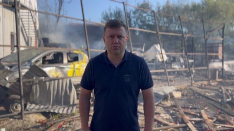 Варто відзначити, що на задньому плані ролика видно залишки конструкції СТО і вигорілі авто.