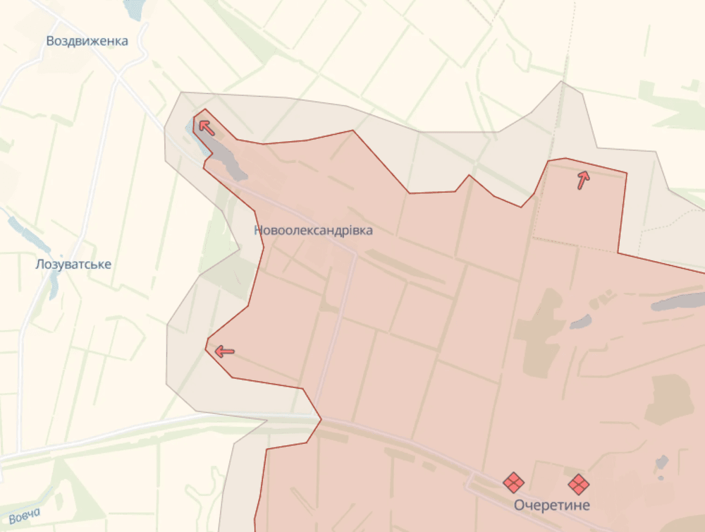 Аналітики опублікували свіжу карту бойових дій, на якій, зокрема, можна побачити, що в районі Новоолександрівки росіяни намагаються наступати у трьох напрямках.