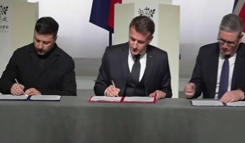 Президент України Володимир Зеленський, президент Франції Еммануель Макрон і прем'єр-міністр Великої Британії Кір Стармер підписали декларацію про наміри щодо розгортання багатонаціональних сил в Україні після завершення війни. Про це стало відомо під час спілкування лідерів зі ЗМІ за підсумками зустрічі "коаліції охочих".