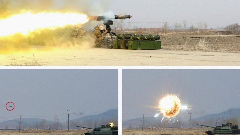 У КНДР стверджують, що ефективність випробуваного активного захисту досягає 100%. "На оприлюднених кадрах зафіксовано обстріл тестової бойової машини протитанковими ракетами різних типів", - зазначили автори.