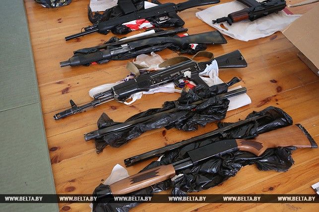"Проведено 29 обшуків за місцями їх проживання, перебування і зберігання предметів і документів. Вилучено автомат Калашникова, 3 карабіни, 2 пістолети, патрони, гранати, кийки, метальні ножі і сокири, предмети і речовини для виготовлення саморобних вибухових пристроїв, військова форма, бронежилети, каски, медичні аптечки натовського зразка, різна атрибутика батальйону "Азов", "Тактичної групи Білорусь", УНА-УНСО, а також посібники по веденню бойових дій в місті", - стверджується в повідомленні.