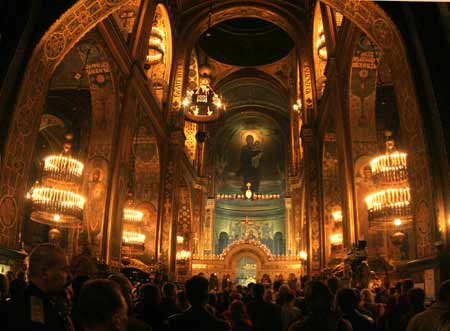 Президент України Віктор ЮЩЕНКО разом з дружиною Катериною ЮЩЕНКО відвідали Великоднє богослужіння у Володимирському соборі в Києві.