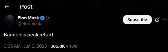Беннон також сказав, що підтримує останню пропозицію Трампа про те, що слід скасувати великі державні контракти Маска, і наголосив, що він, як і інші чиновники, застерігав Трампа проти зайвої підтримки Маска.