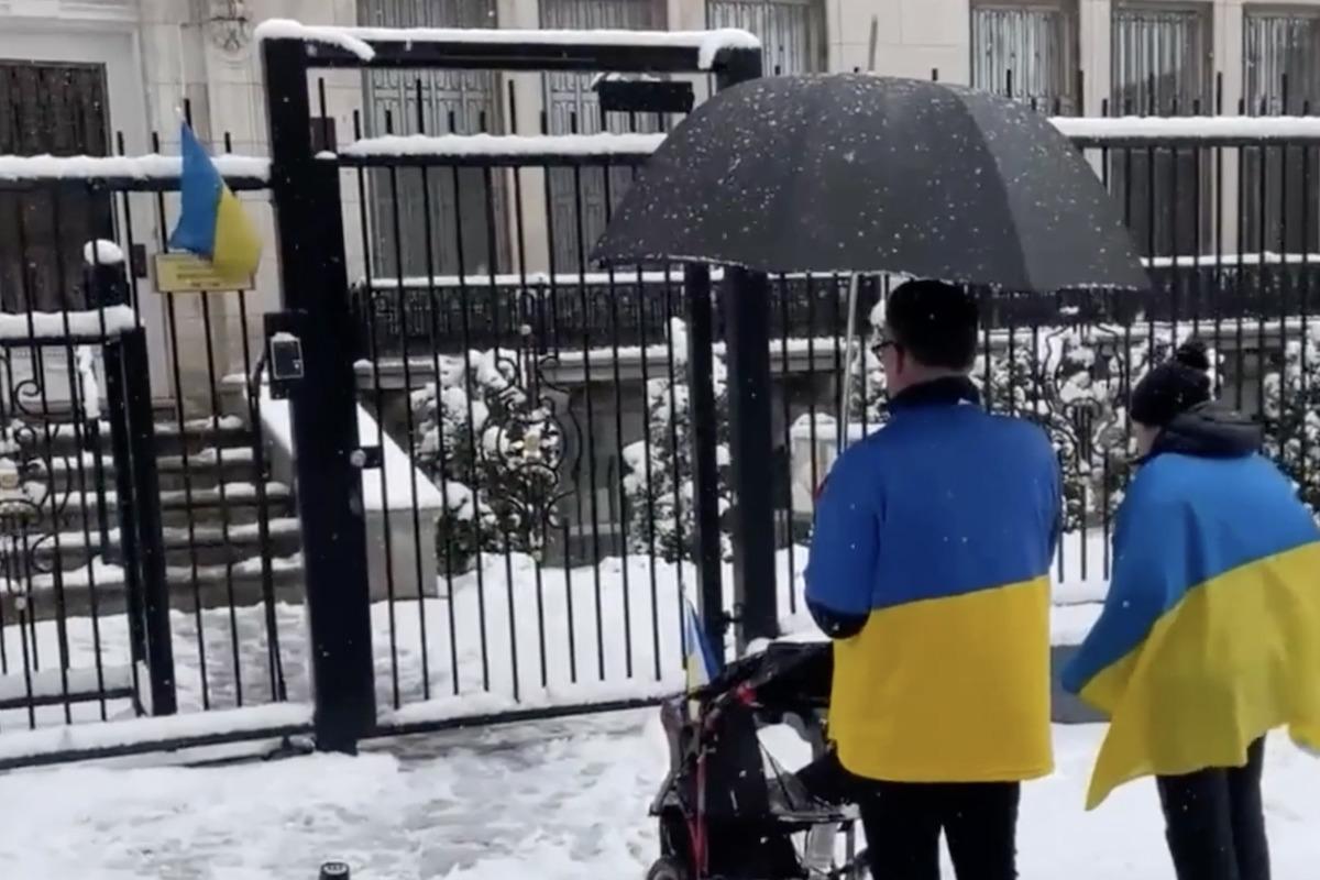 Звуки пострілів під російською амбасадою, запрошення до пекла, тривожні сирени та гімн України, і так щодня. За 7 тисяч кілометрів від Києва канадієць Серж Саввіль протестує проти російської агресії в Україні.