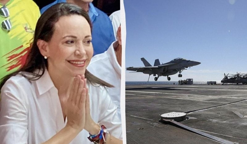 У вересні та жовтні поточного року США потопили в Карибському морі кілька суден, які начебто перевозили наркотики з Венесуели. Тепер Трамп вже публічно розмірковує про можливе вторгнення у Венесуелу. Журналістка запитала, як пані Мачадо, лауреатка премії миру, ставиться до можливої наземної операції США проти Венесуели.