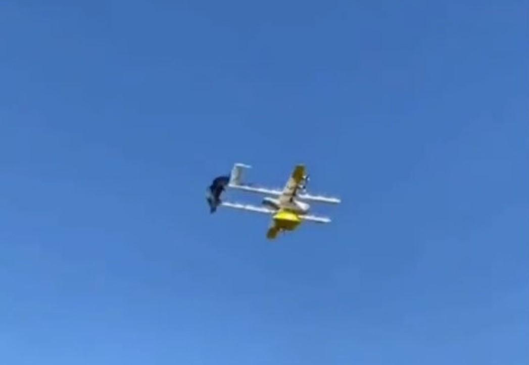 На оприлюднених кадрах видно, що дрон Wing намагається приземлитися, коли на нього напав чорний ворон. У підсумку дрон доставив посилку, після чого полетів.